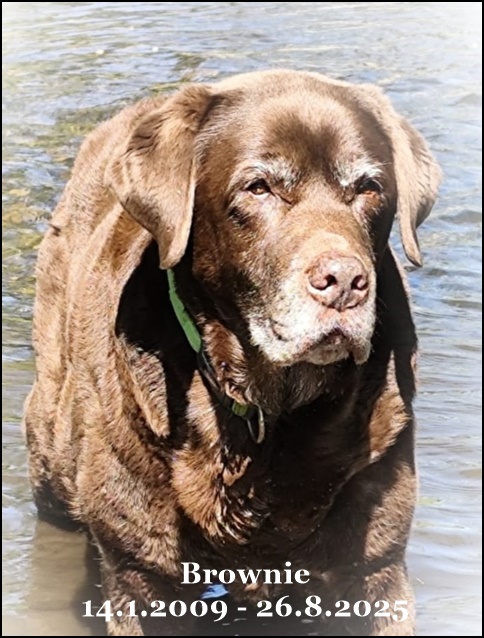 Geliebter Brownie, unser Sonnenschein, so war dein Rufname als du geboren wurdest. Fast 17 Jahre warst du an unserer Seite und hast uns nie Kummer oder Sorgen bereitet, immer fröhlich und zu Späßen aufgelegt. Jeder, der dich kannte, hat dich sofort gern gehabt, es ging gar nicht anders. Du warst der Fels in der Brandung, vor allem in deinem Rudel, deine Mädels haben dich geliebt. Du hattest ein wunderbares langes und schönes Leben, warst nie krank und wir haben geglaubt, dass wir noch mehr Zeit zusammen haben. Eines Morgens trugen dich plötzlich deine Beine nicht mehr, du hattest Schmerzen und als kein Medikament anschlug, haben wir dich aus Liebe gehen lassen. Du hast deine letzte Reise zu Hause im Kreise deines Rudels angetreten.
