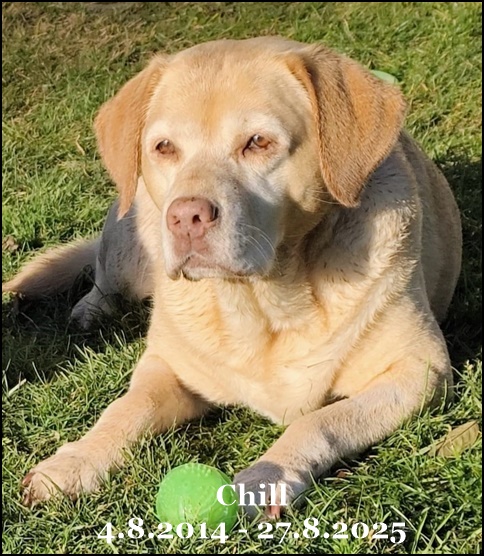 Geliebte Chill, unser verrückter Wirbelwind, Balljunkee und wilde Hilde. Du warst typisch Labbi, freudig, temperamentvoll und liebtest deine Bälle. Wann immer sich für dich die Gelegenheit bot, hast du zum Spiel aufgefordert, auch bei Besuch, ob diejenigen wollten oder nicht. Du liebtest Wasser über alles, am liebsten stundenlang, legendär war auch dein Wasserweitsprung, den kein Hund je übertroffen hat. Dein Leben war intensiv, mit viel Lebensfreude und Spaß, aber du durftest nur 11 Jahre alt werden. Im März diesen Jahres wurdest du aufgrund eines geplatzten, bösartigen Milztumors notoperiert, die Überlebenschance war gleich null. Aber dein eiserner Wille hatte gesiegt und wir konnten noch über fünf wunderschöne Monate mit vielen Erlebnissen miteinander verbringen, wofür wir unendlich dankbar sind. Drei Stunden nach dem Tod deines Bruders Brownie fing es an, dir nicht gut zu gehen und am nächsten Morgen hast du uns gezeigt, dass auch deine Zeit gekommen war. Auch dich haben wir zu Hause bis zur Regenbogenbrücke begleitet.